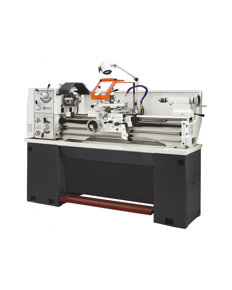 Lathe Machine C0636A is a precise and durable tool featuring a robust construction with precision ground and supersonic frequency hardened bed ways. Its headstock gears are made of high-quality, ground, and hardened steel, supported by precision roller bearings for consistent performance. Offering a wide spindle speed range of 70-2000 RPM across 8 steps, it’s suitable for various tasks. The machine includes a sealed, easy-to-operate feed box with diverse feeds and thread cutting functions, supporting both inch (4-56 T.P.I.) and metric (0.4-7mm) threading, as well as diametral and module threads. It is powered by a 2HP (1.5KW) electric motor available in multiple voltage configurations.