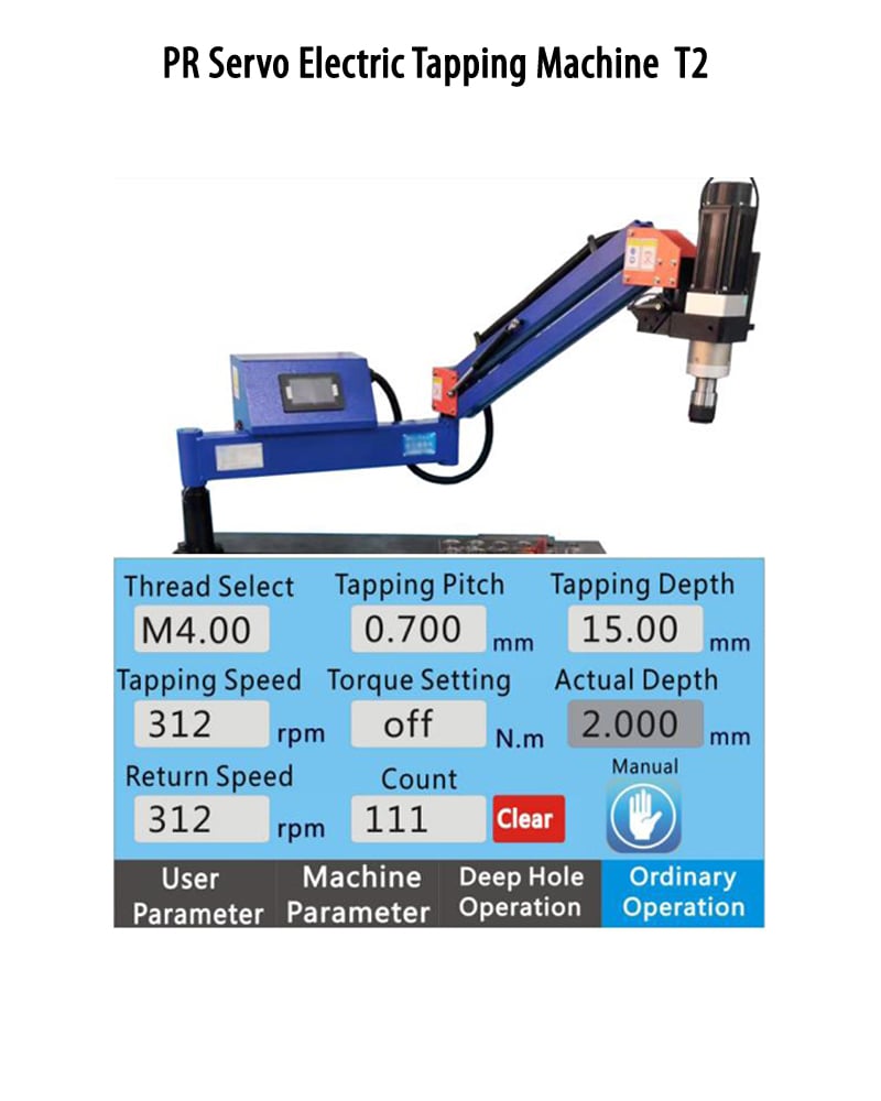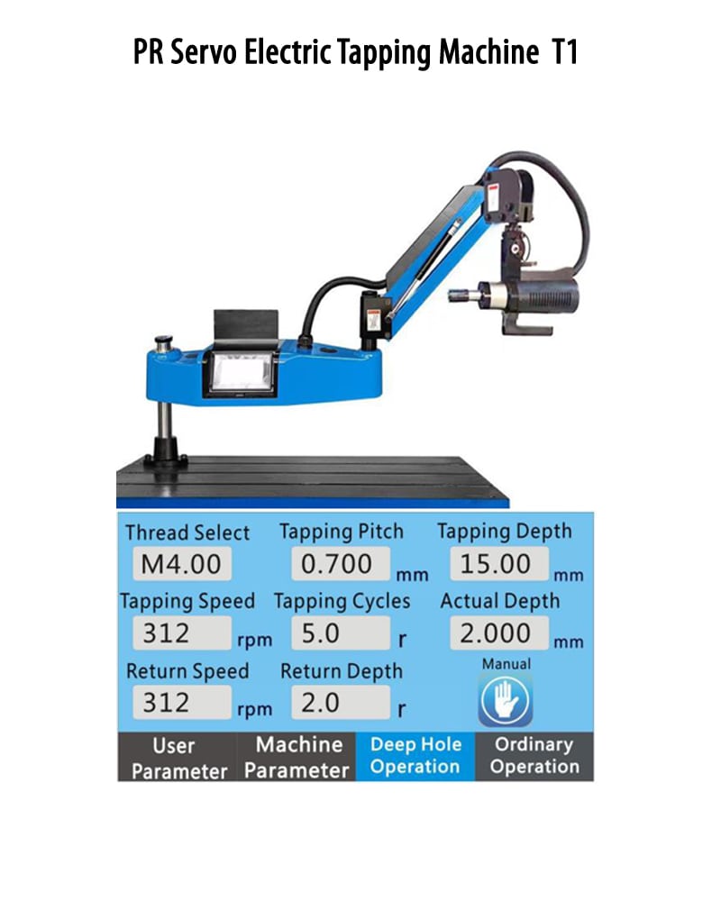 The PR Servo Electric Tapping Machine T1–T2 series is designed for high-precision, efficient, and versatile tapping operations.